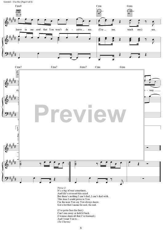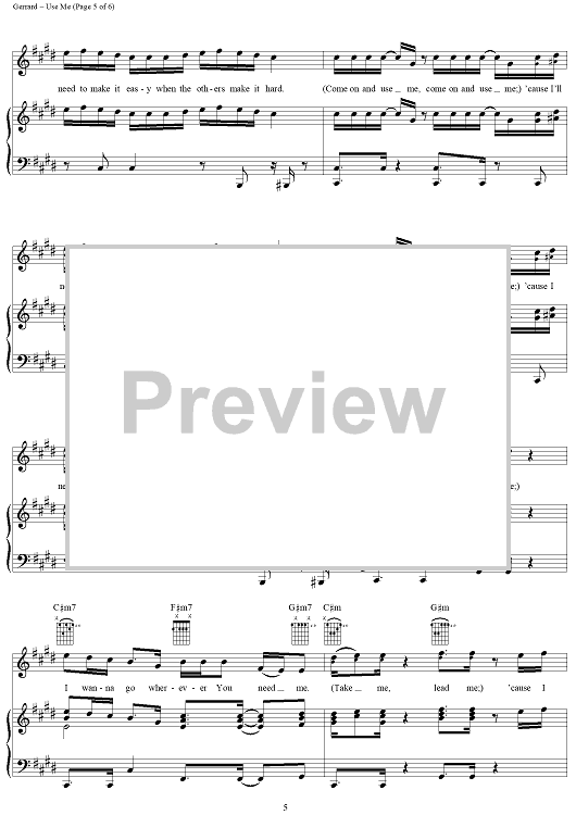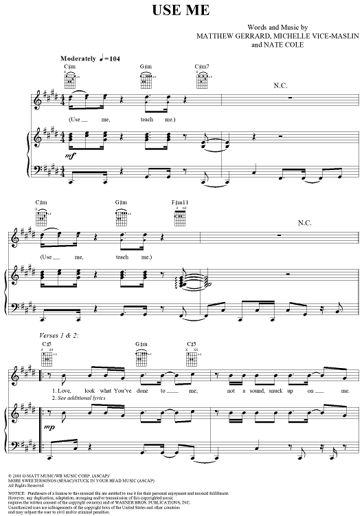 Digital Sheet Music for Use Me by Michele Vice-Maslin, Matthew Gerrard, Plus One, Nate Cole scored for Piano/Vocal/Chords; id:292075