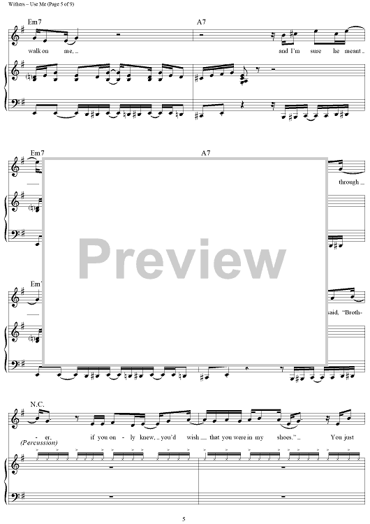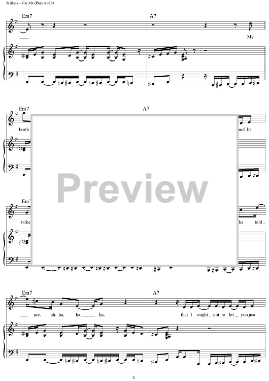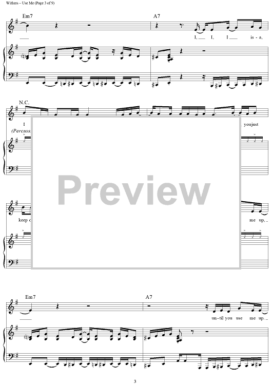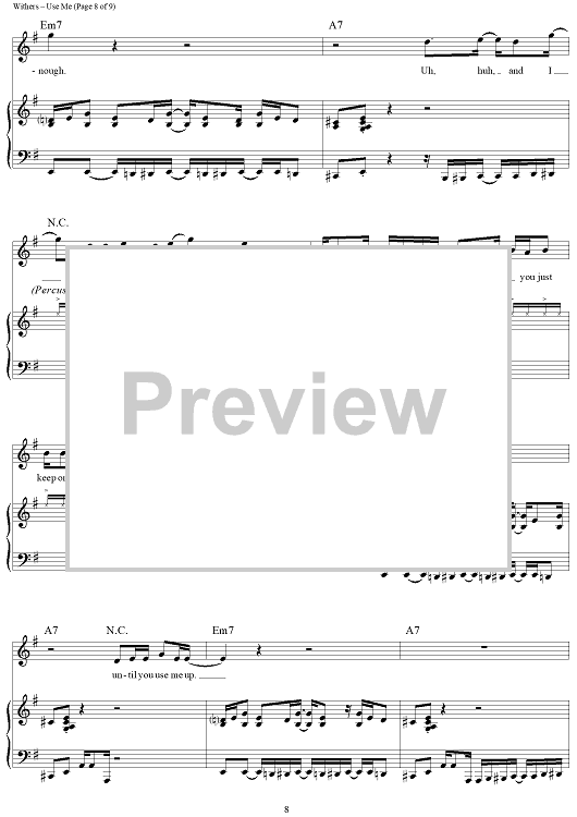 Digital Sheet Music for Use Me by Bill Withers scored for Piano/Vocal/Chords; id:432368