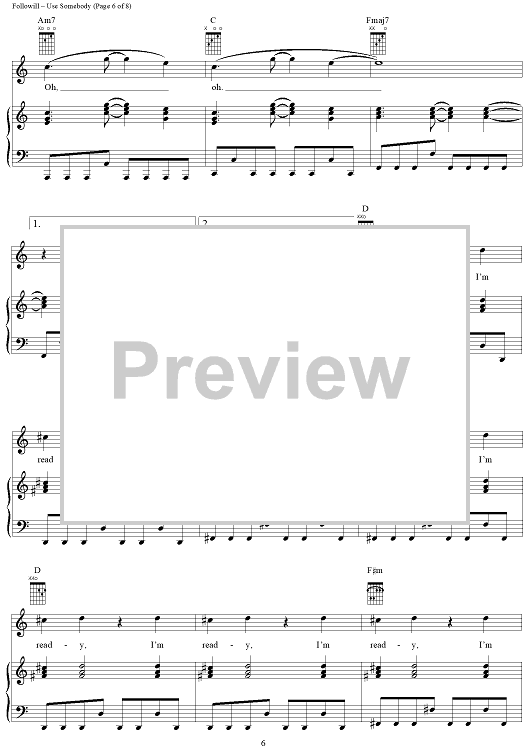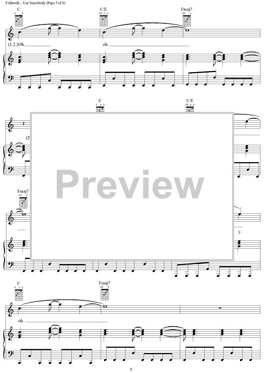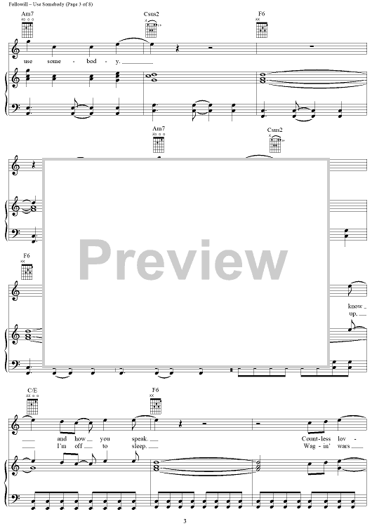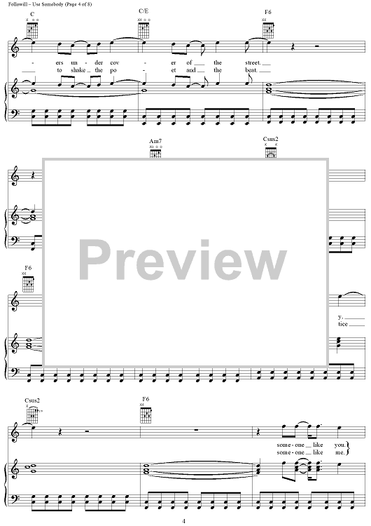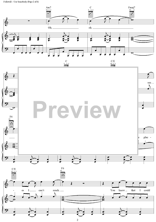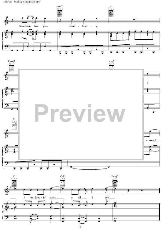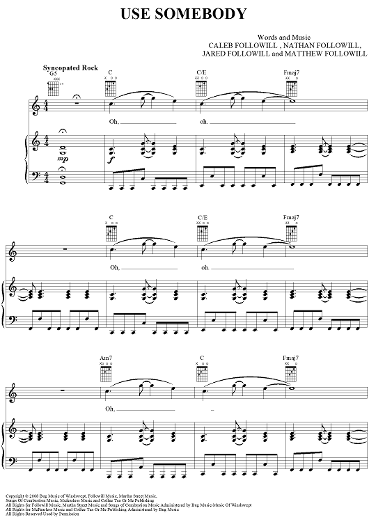 Digital Sheet Music for Use Somebody by Caleb Followill, Jared Followill, Matthew Followill, Nathan Followill, Kings of Leon scored for Piano/Vocal/Chords; id:407979