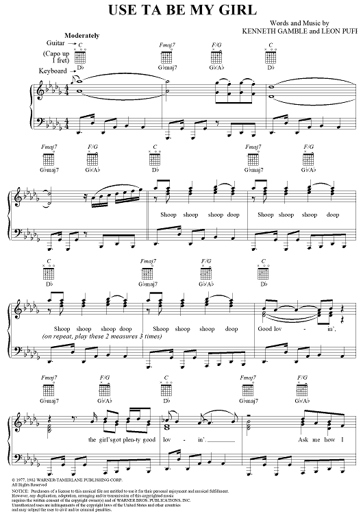 Digital Sheet Music for Use Ta Be My Girl by Leon Huff, Kenneth Gamble, The O'Jays scored for Piano/Vocal/Chords; id:269009