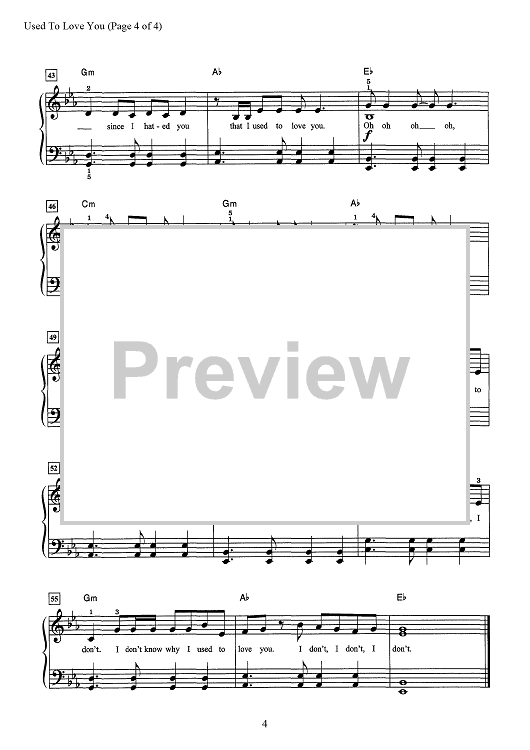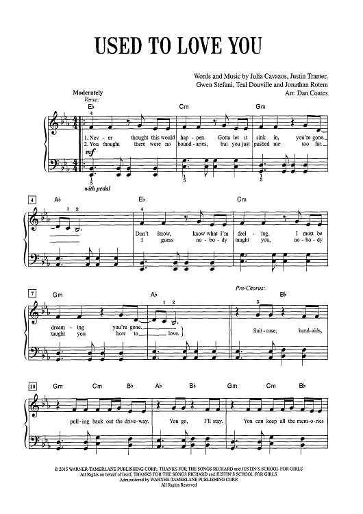 Digital Sheet Music for Used To Love You by Dan Coates, Jonathan Rotem, Gwen Stefani, Justin Tranter, Julia Cavazoz, Teal Douville scored for Easy Piano/Vocal/Chords; id:466677
