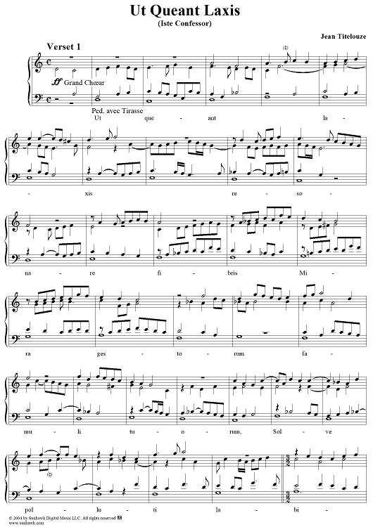 "Ut Queant Laxis (3 versets)" Sheet Music by Jean Titelouze