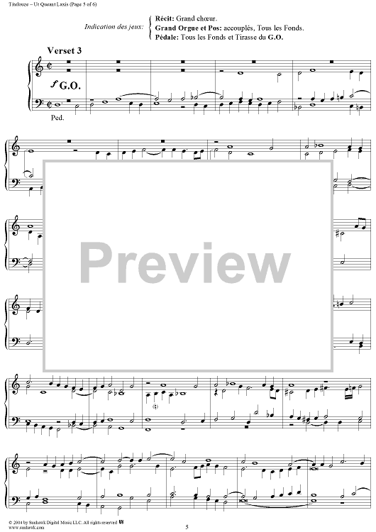 Digital Sheet Music for Ut Queant Laxis (3 versets) by Jean Titelouze scored for Organ Solo; id:296097