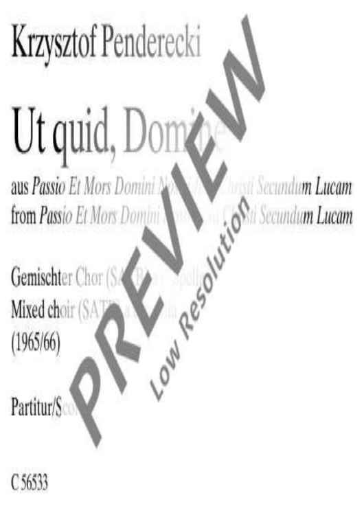 Digital Sheet Music for Ut quid, Domine - Choral Score by Krzysztof Penderecki scored for Mixed Choir (satb) A Cappella; id:486000