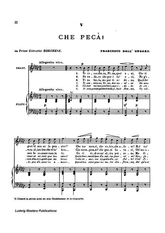 Digital Sheet Music for V - Che Pecá! by , Reynaldo Hahn, Maurice Léna, Francesco Dall' Ongaro scored for Piano/Vocal; id:444850
