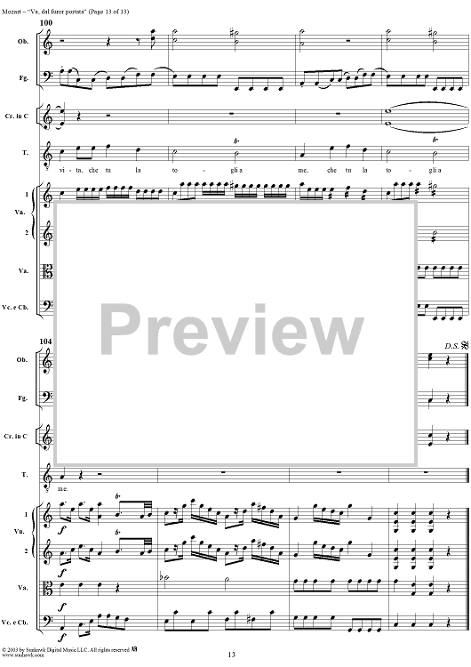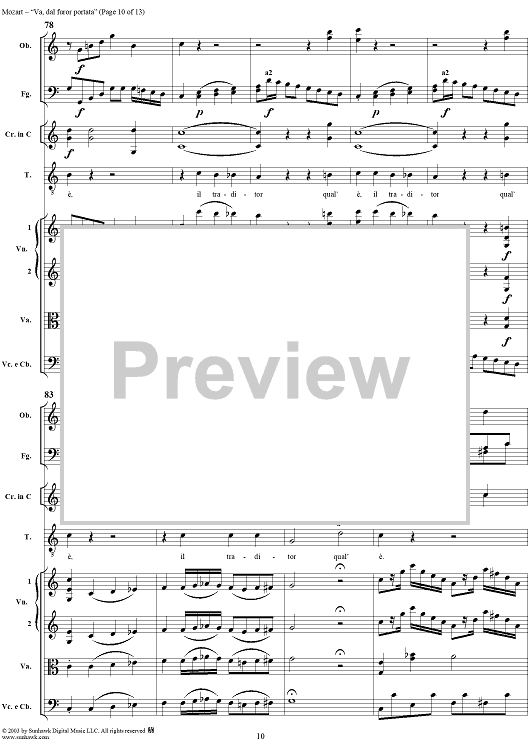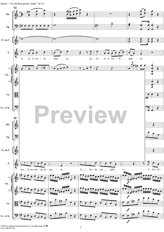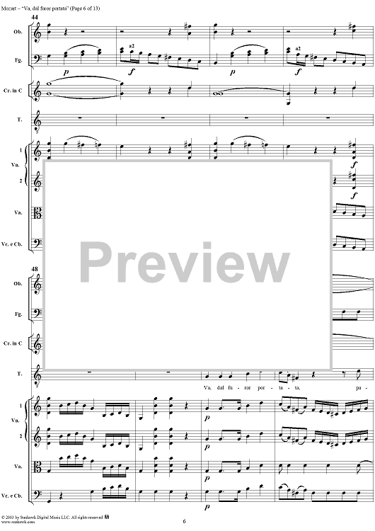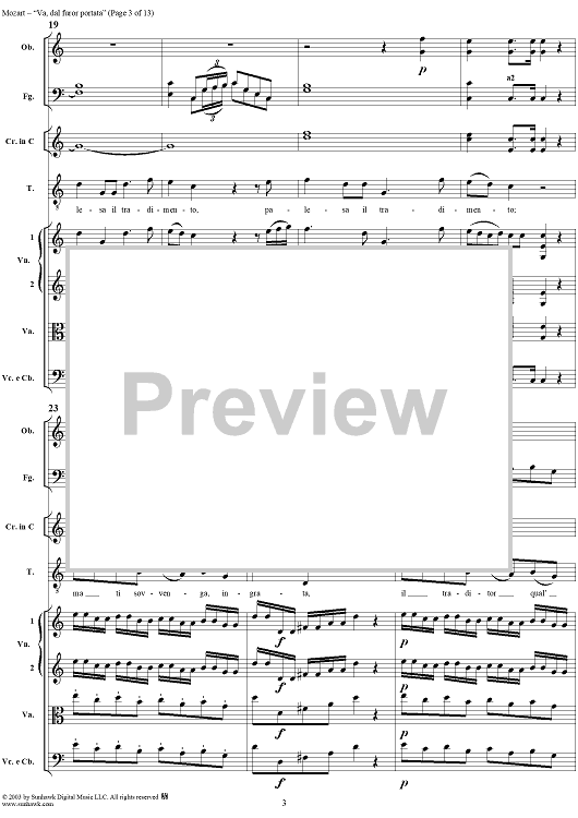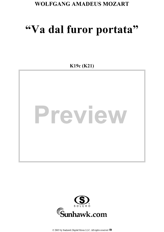 Digital Sheet Music for "Va, dal furor portata", aria, K19c (K21) - Full Score by Wolfgang Amadeus Mozart scored for Tenor/Orchestra; id:292267
