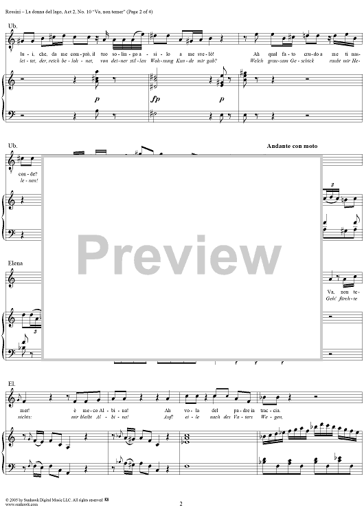 Digital Sheet Music for Va, non temer: No. 10 from "La donna del lago", Act 2 - Score by Gioachino Rossini scored for Voice/Piano; id:303446