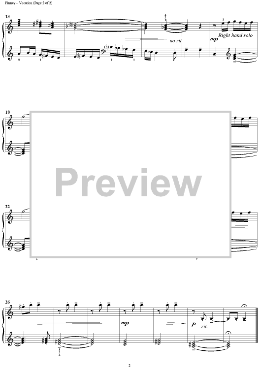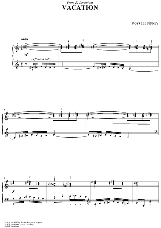 "Vacation - From '25 Inventions'" Sheet Music by Ross Lee Finney