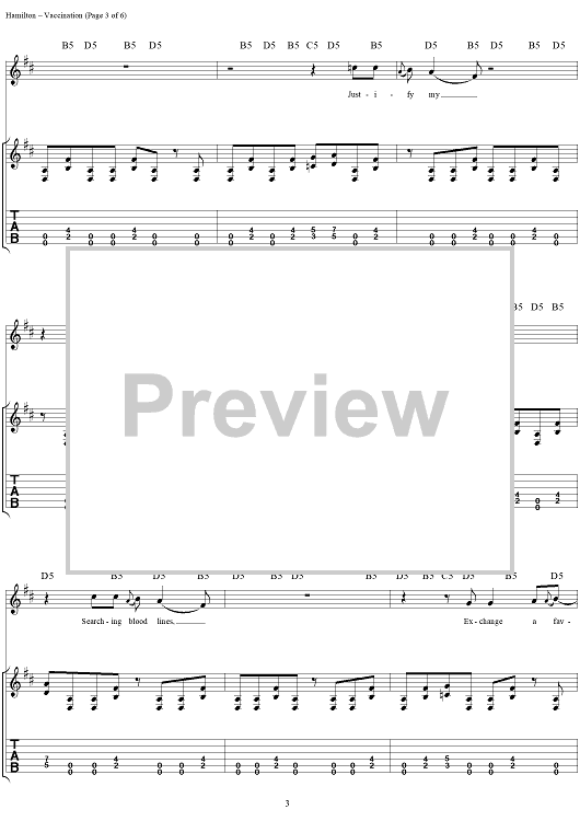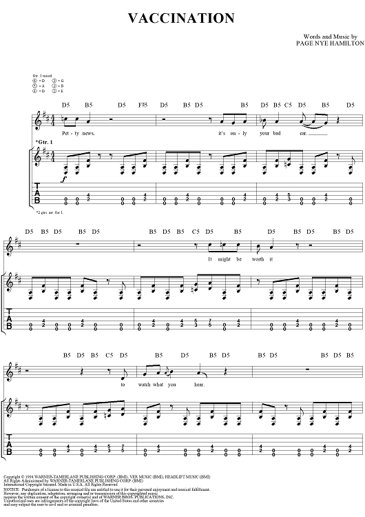 Digital Sheet Music for Vaccination by Helmet, Page Nye Hamilton scored for Guitar Tab/Vocal; id:151610