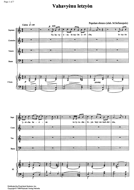 Digital Sheet Music for Vahavyènu letzyòn by , Marco Sofianopulo, Traditional scored for Choir/Piano; id:328850