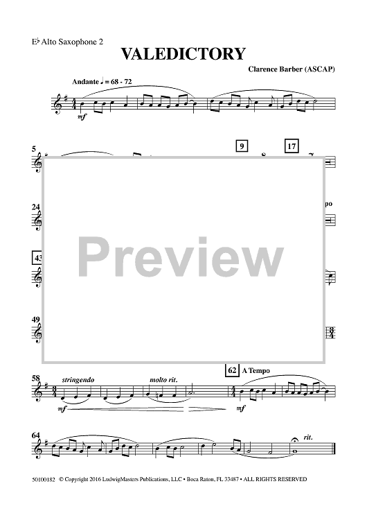 "Valedictory - Eb Alto Sax 2" Sheet Music by Clarence Barber