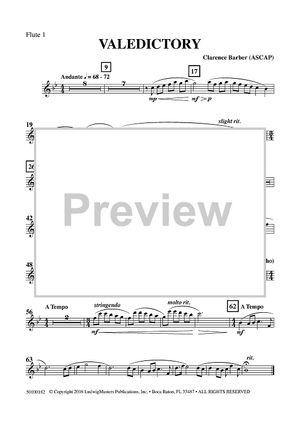 "Valedictory - Flute 1" Sheet Music by Clarence Barber