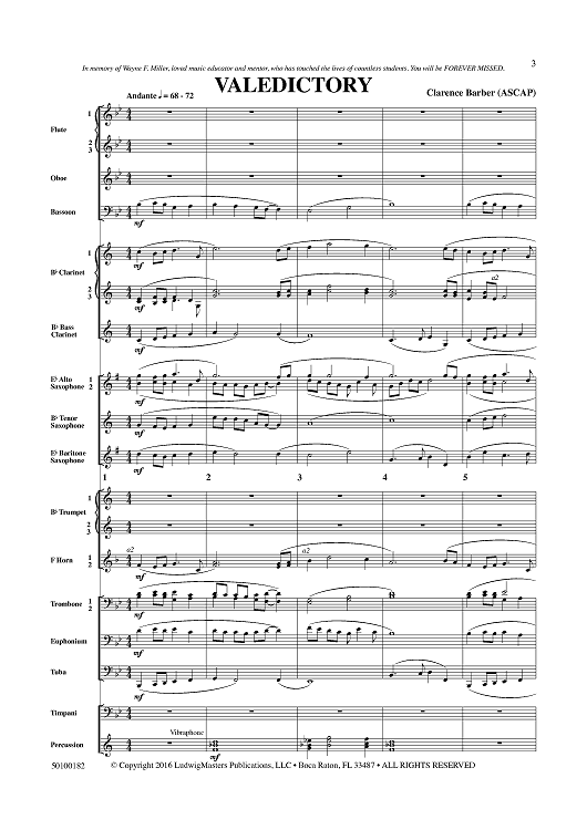 "Valedictory - Score" Sheet Music by Clarence Barber