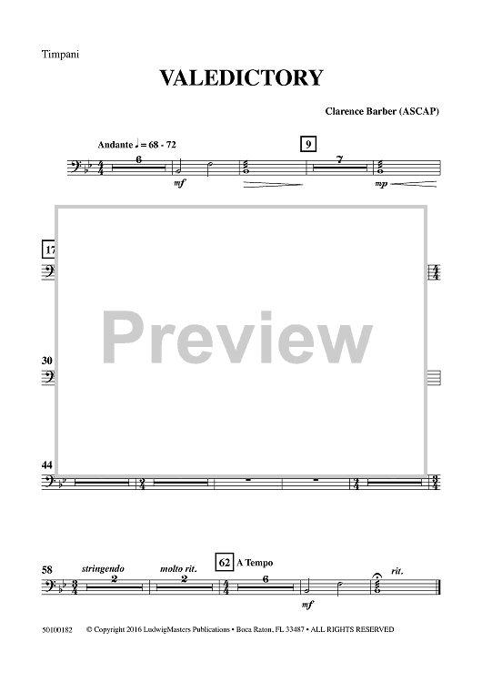 "Valedictory - Timpani" Sheet Music by Clarence Barber