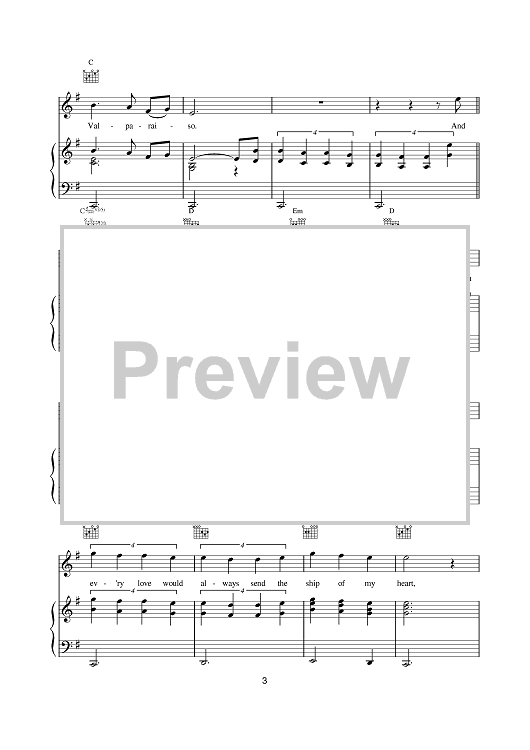 Digital Sheet Music for Valparaiso by Sting scored for Piano/Vocal/Chords; id:376137