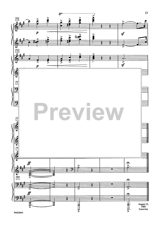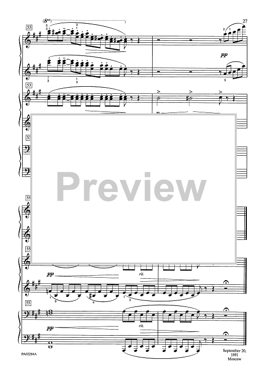 Written when the composer was just 17 to 18 years of age, these romantic-styled pieces for piano trio were dedicated to 3 friends, Natalya, Lyudmila, and Vera Skalon. They feature a short passage that would later be used in Rachmaninoff's 2nd Piano Concerto, beginning the 2nd movement. It is an especially nice, and playable, ensemble concert piece, technically within the reach of late intermediate artists.