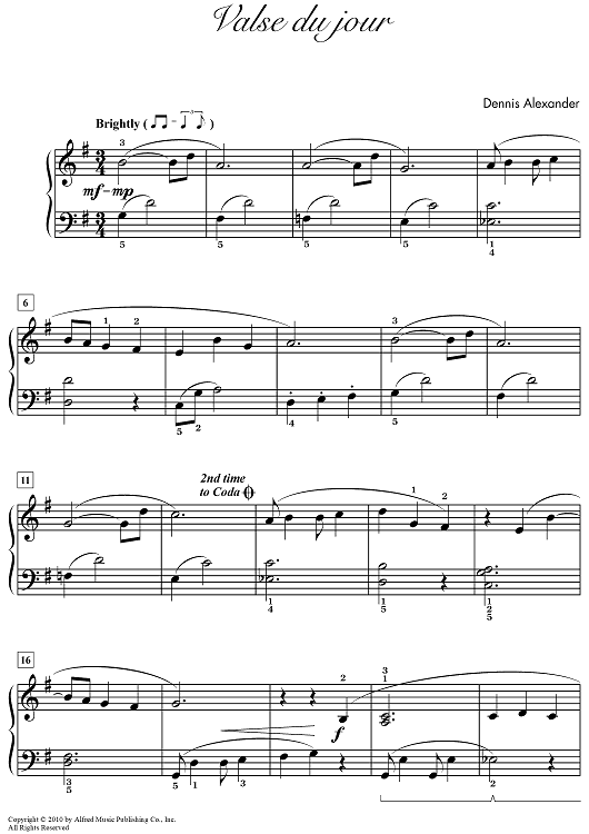 Digital Sheet Music for Valse du jour by Dennis Alexander scored for Piano Solo; id:469223