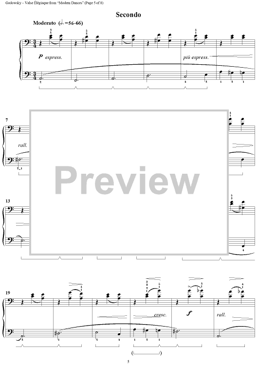 Digital Sheet Music for Valse Élégiaque by Leopold Godowsky scored for 1 Piano, 4 Hands; id:284401