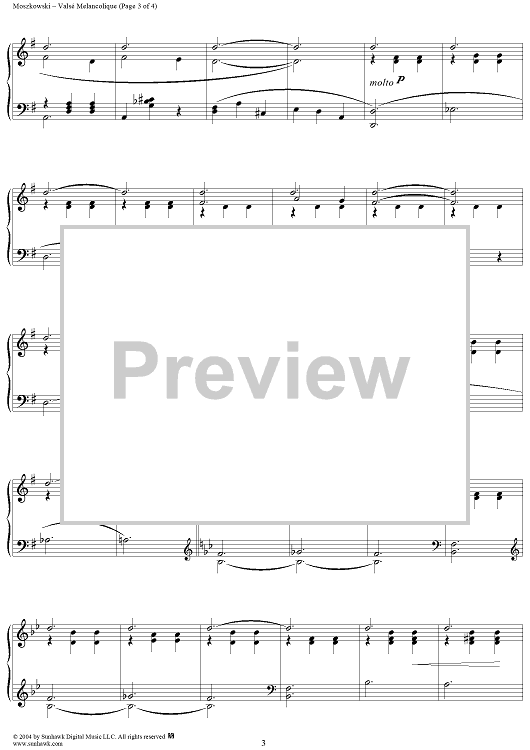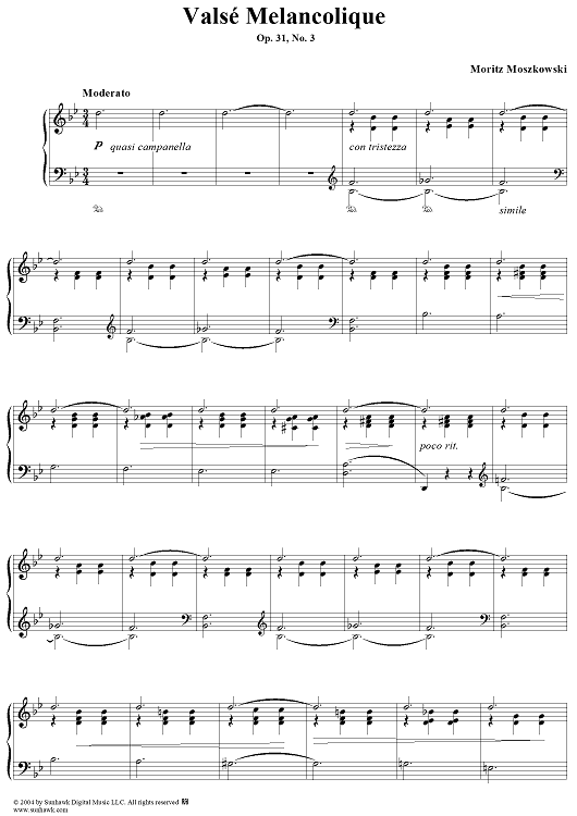Digital Sheet Music for Valsé Melancolique, Op. 31, No. 3 by Moritz Moszkowski scored for Piano Solo; id:296743