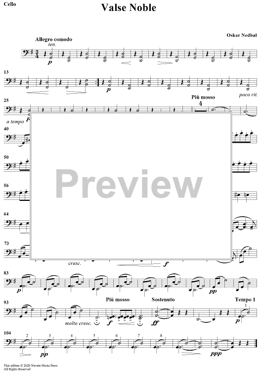 "Valse Noble - Cello" Sheet Music by Oskar Nedbal