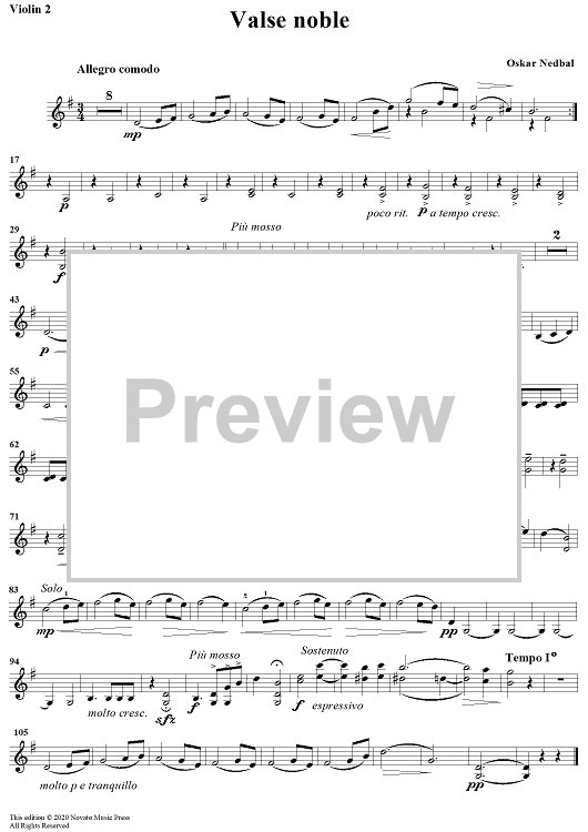 "Valse Noble - Violin 2" Sheet Music by Oskar Nedbal