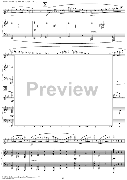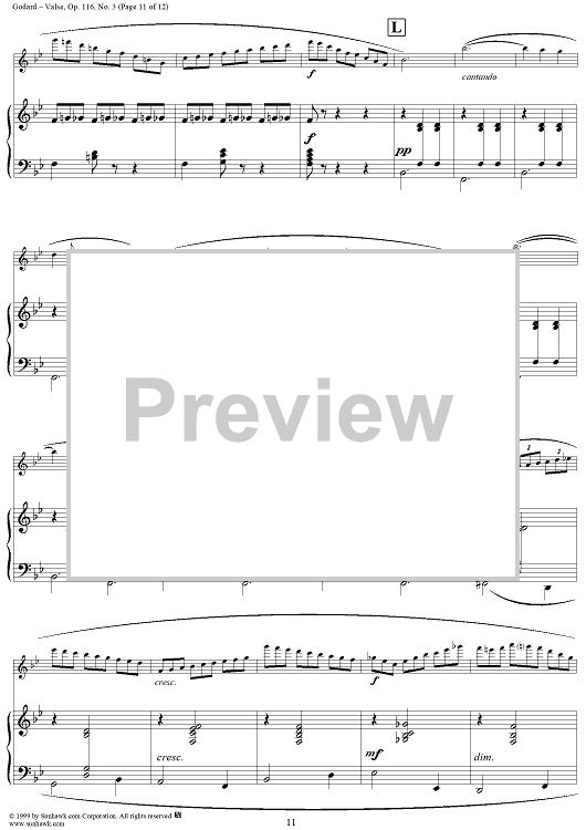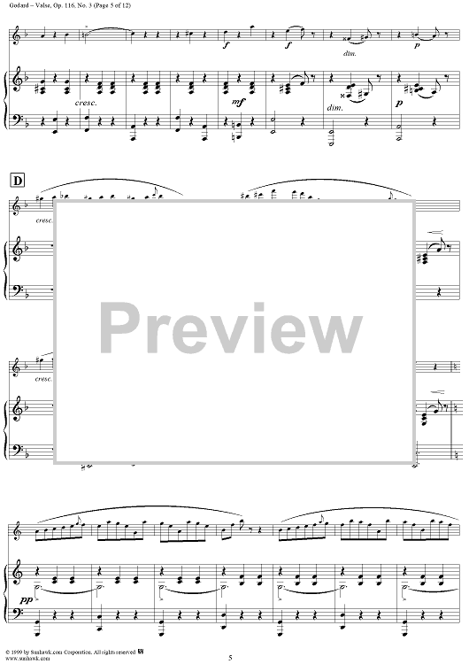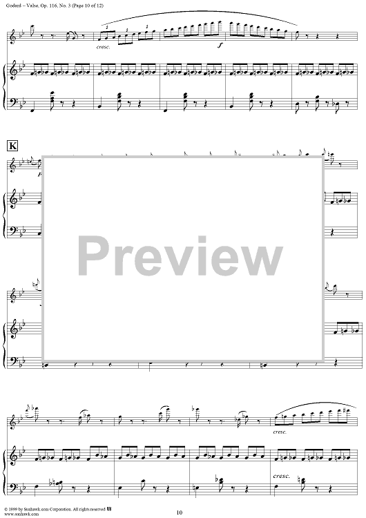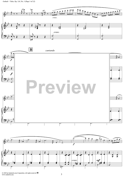 Digital Sheet Music for Valse, Op. 116, No. 3 - Piano Score by Benjamin Godard scored for Flute/Piano; id:120497