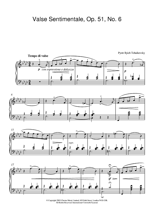"Valse Sentimentale, Op. 51, No. 6" Sheet Music by Peter Ilyich Tchaikovsky