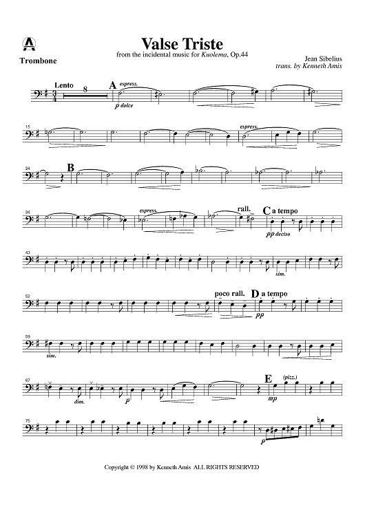 "Valse Triste - Trombone" Sheet Music by Kenneth Amis