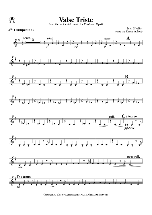 "Valse Triste - Trumpet 2 in C" Sheet Music by Kenneth Amis