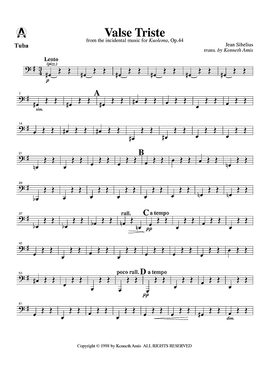 "Valse Triste - Tuba" Sheet Music by Kenneth Amis