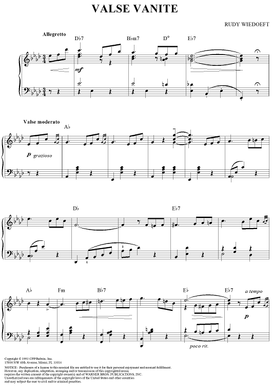 Digital Sheet Music for Valse Vanite by Rudy Wiedoeft scored for Piano Solo; id:263831