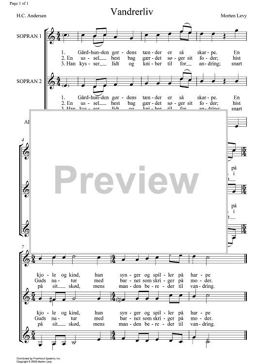 Digital Sheet Music for Vandrerliv by Morten Levy scored for Girls' Choir; id:354236