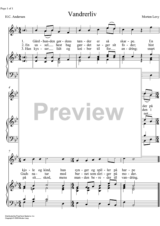 Digital Sheet Music for Vandrerliv by Morten Levy scored for Soprano or Tenor/Piano; id:354246