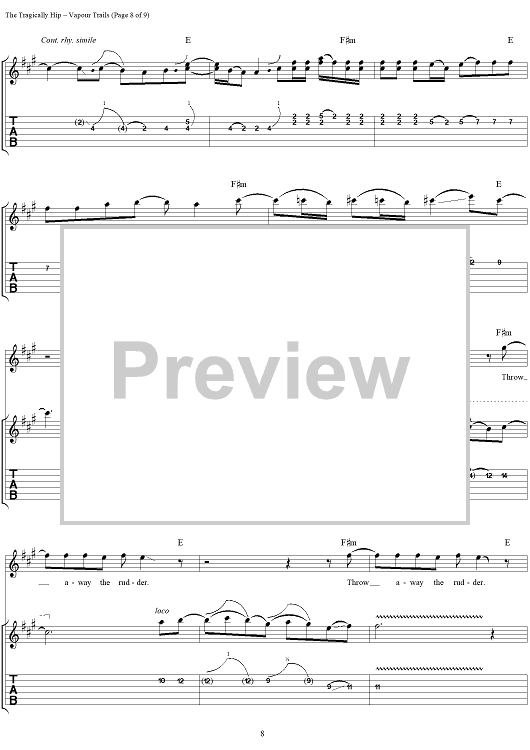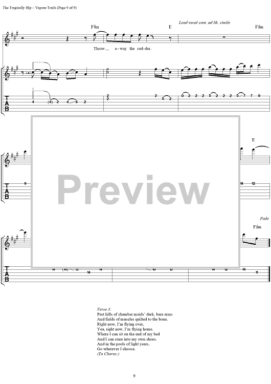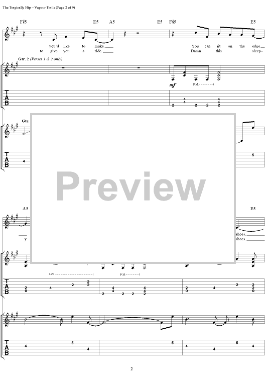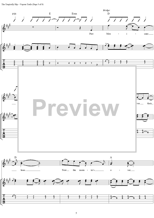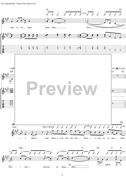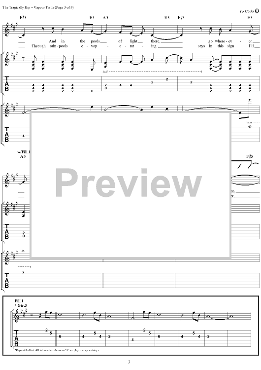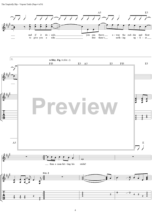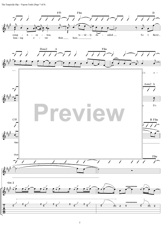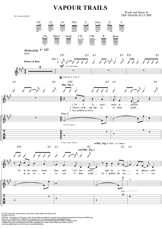 "Vapour Trails" Sheet Music by The Tragically Hip