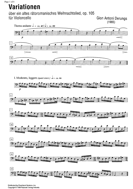 Digital Sheet Music for Variationen by , Gion Derungs scored for Cello; id:334232
