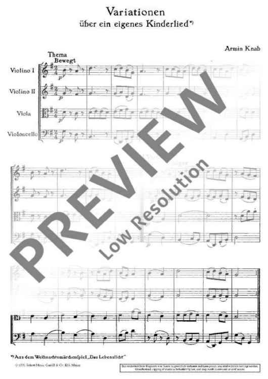 Digital Sheet Music for Variationen über ein eigenes Kinderlied - Performing Score by Armin Knab scored for String Quartet; id:472421