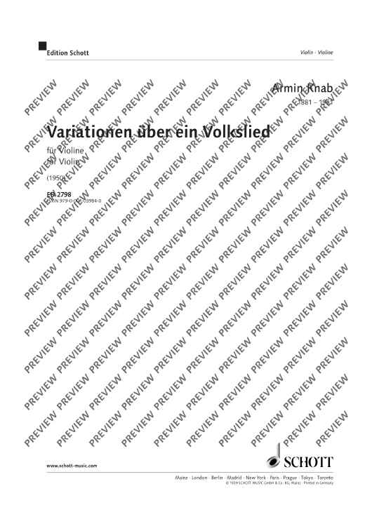 Digital Sheet Music for Variationen über ein Volkslied by Armin Knab scored for Violin; id:486361