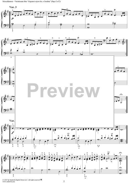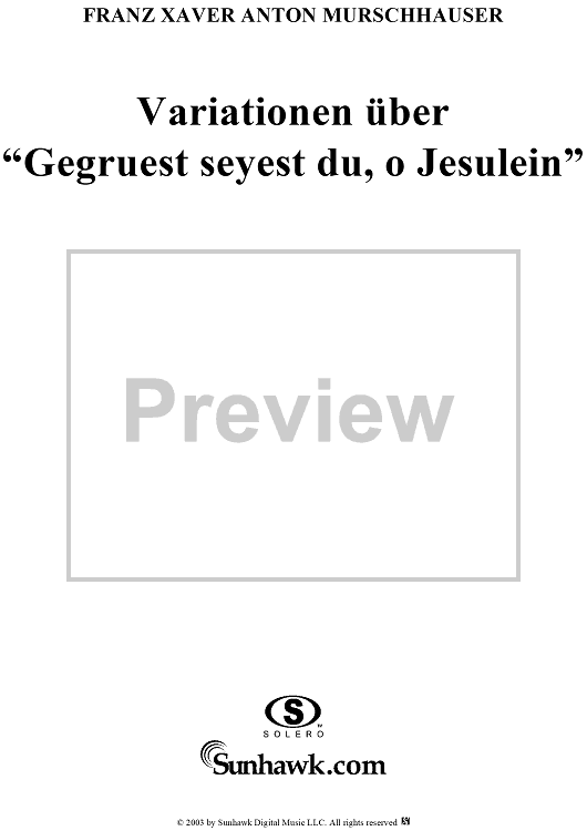 "Variationen über "Gegruest Seyest du, O Jesulein" in G Major" Sheet Music by Franz X. Anton Murschhauser