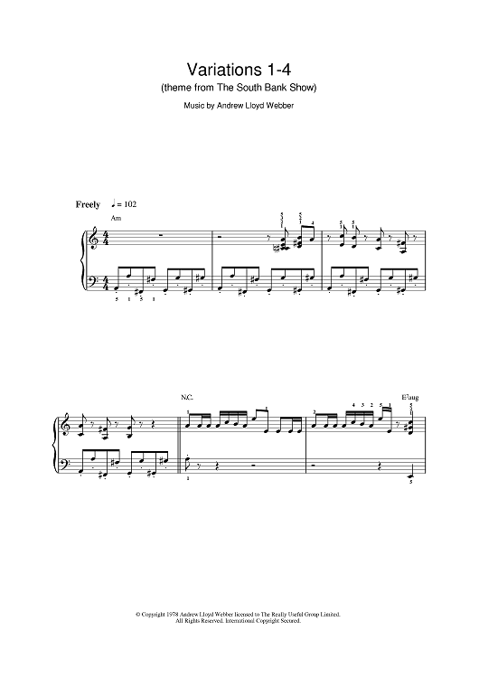 "Variations 1-4 (theme from The South Bank Show)" Sheet Music by Andrew Lloyd Webber