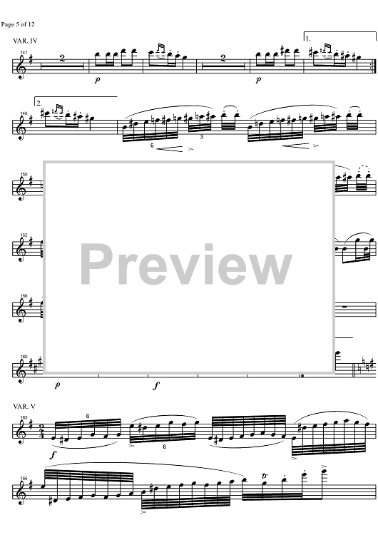 Digital Sheet Music for Variations D802 - Flute by Franz Schubert scored for Flute/Piano; id:322954