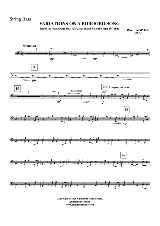 "Variations on a Boboobo Song - String Bass" Sheet Music by David A. Myers