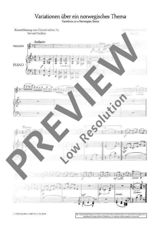 Digital Sheet Music for Variations on a Norwegian Theme by Samuel Dushkin, Carl Maria Von Weber scored for Violin And Piano; id:473823