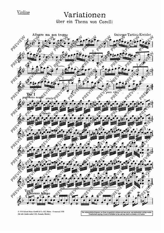 Digital Sheet Music for Variations on a theme by Corelli F major by Fritz Kreisler scored for Violin And Piano; id:485247