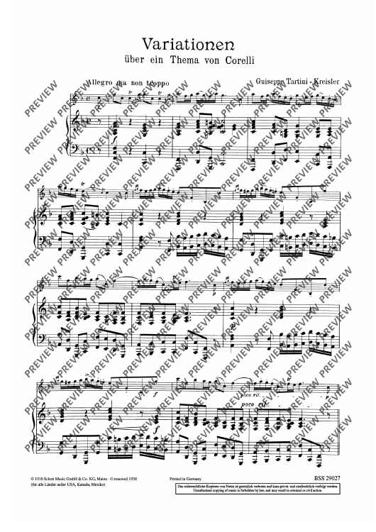 "Variations on a theme by Corelli F major" Sheet Music by Fritz Kreisler