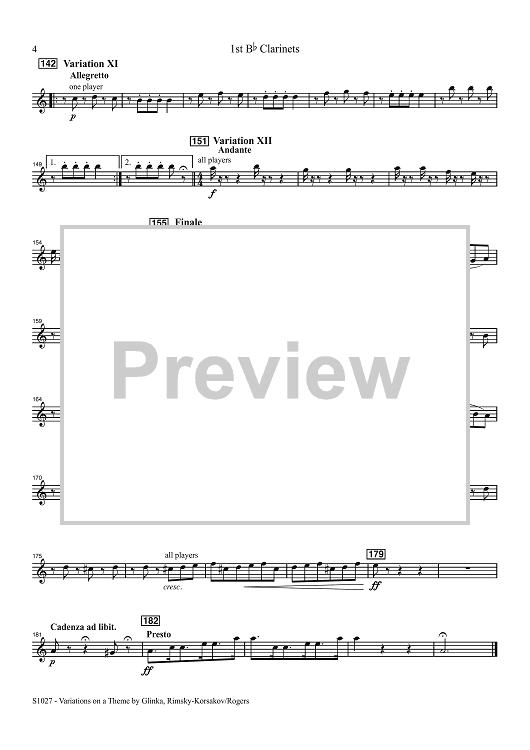 Digital Sheet Music for Variations on a Theme by Glinka for Solo Oboe and Wind Band - 1st Bb Clarinets by Nikolai Rimsky-Korsakov, R. Mark Rogers scored for Concert Band; id:506448