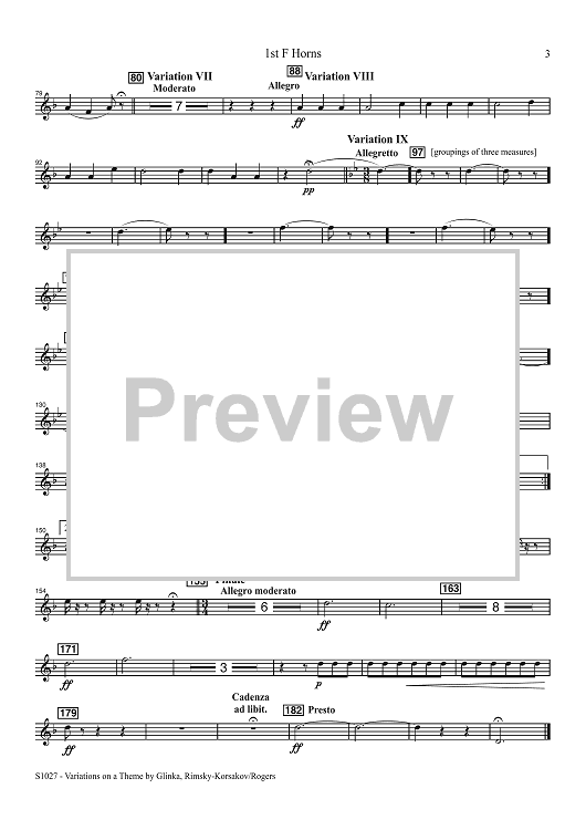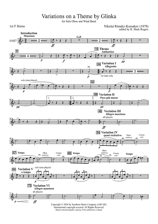 Digital Sheet Music for Variations on a Theme by Glinka for Solo Oboe and Wind Band - 1st F Horns by Nikolai Rimsky-Korsakov, R. Mark Rogers scored for Concert Band; id:506467