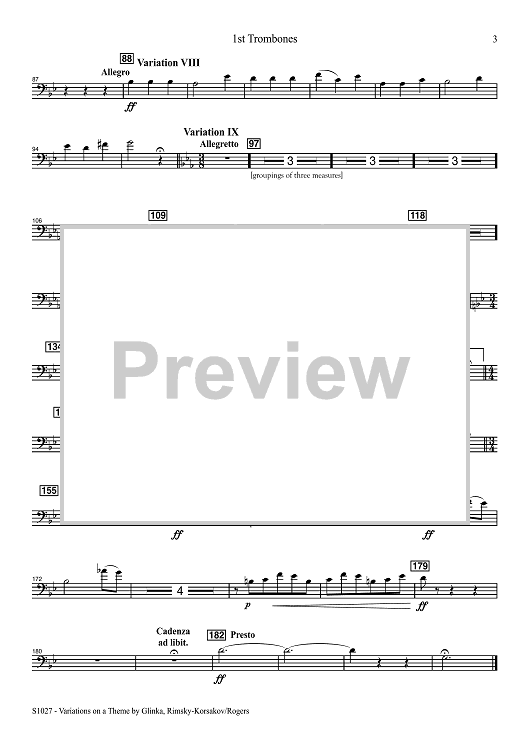 Digital Sheet Music for Variations on a Theme by Glinka for Solo Oboe and Wind Band - 1st Trombones by Nikolai Rimsky-Korsakov, R. Mark Rogers scored for Concert Band; id:506471