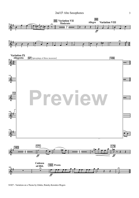 Digital Sheet Music for Variations on a Theme by Glinka for Solo Oboe and Wind Band - 2nd Eb Alto Saxophones by Nikolai Rimsky-Korsakov, R. Mark Rogers scored for Concert Band; id:506458
