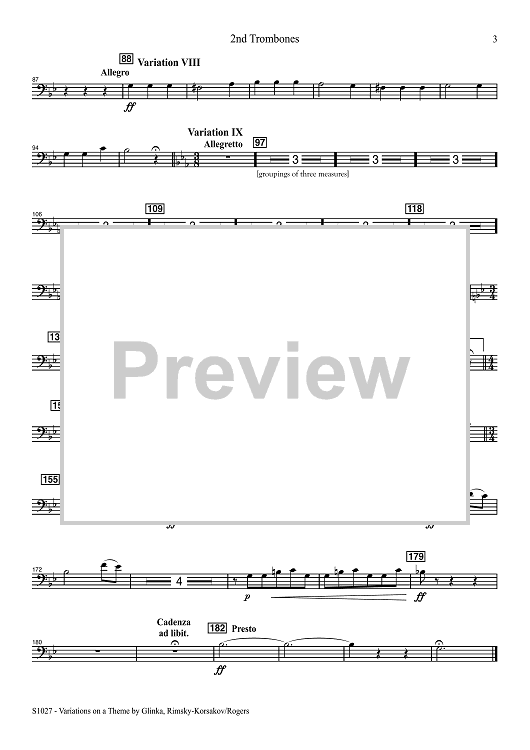 Digital Sheet Music for Variations on a Theme by Glinka for Solo Oboe and Wind Band - 2nd Trombones by Nikolai Rimsky-Korsakov, R. Mark Rogers scored for Concert Band; id:506472