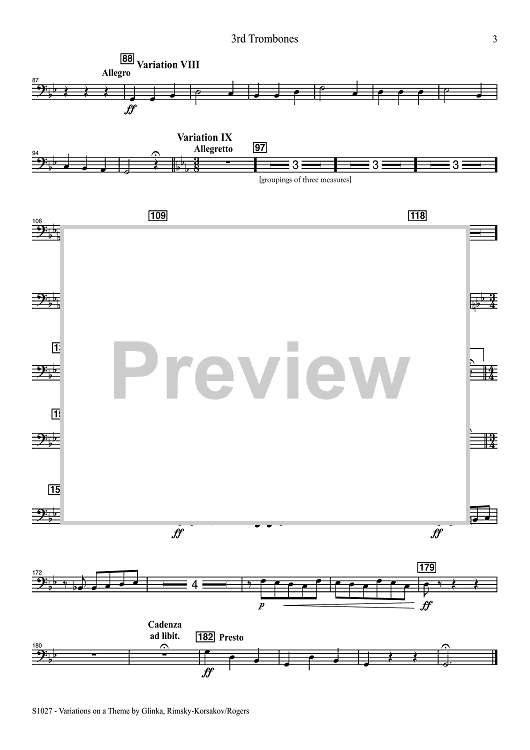 Digital Sheet Music for Variations on a Theme by Glinka for Solo Oboe and Wind Band - 3rd Trombones by Nikolai Rimsky-Korsakov, R. Mark Rogers scored for Concert Band; id:506473